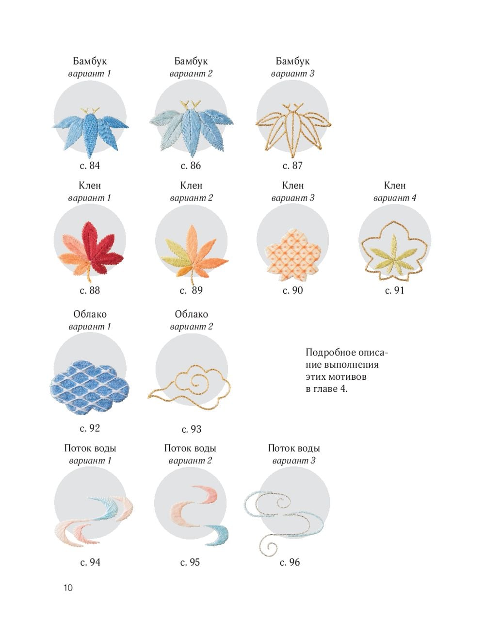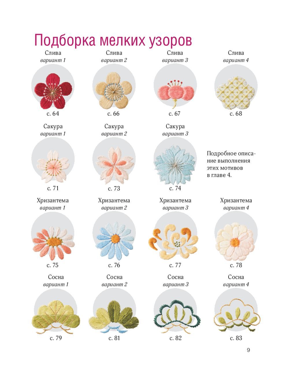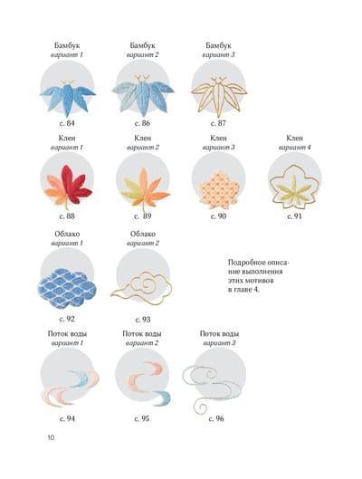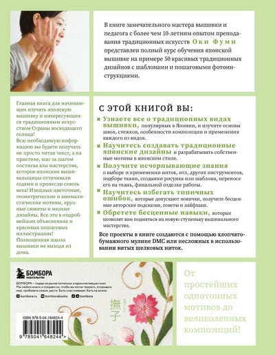 Уникальное издание — настоящий проводник в мир красивейшей традиционной японской вышивки! Все проекты в книге создаются с помощью хлопчатобумажного мулине DMC или несложных в использовании витых шелковых ниток. Более 50 дизайнов: сакура, сливы, хризантемы, сосна, бамбук, розовый закат, облака, проточная вода, снежинки, ржанки, золотые рыбки и множество других композиций! От простейших однотонных мотивов до великолепных композиций!