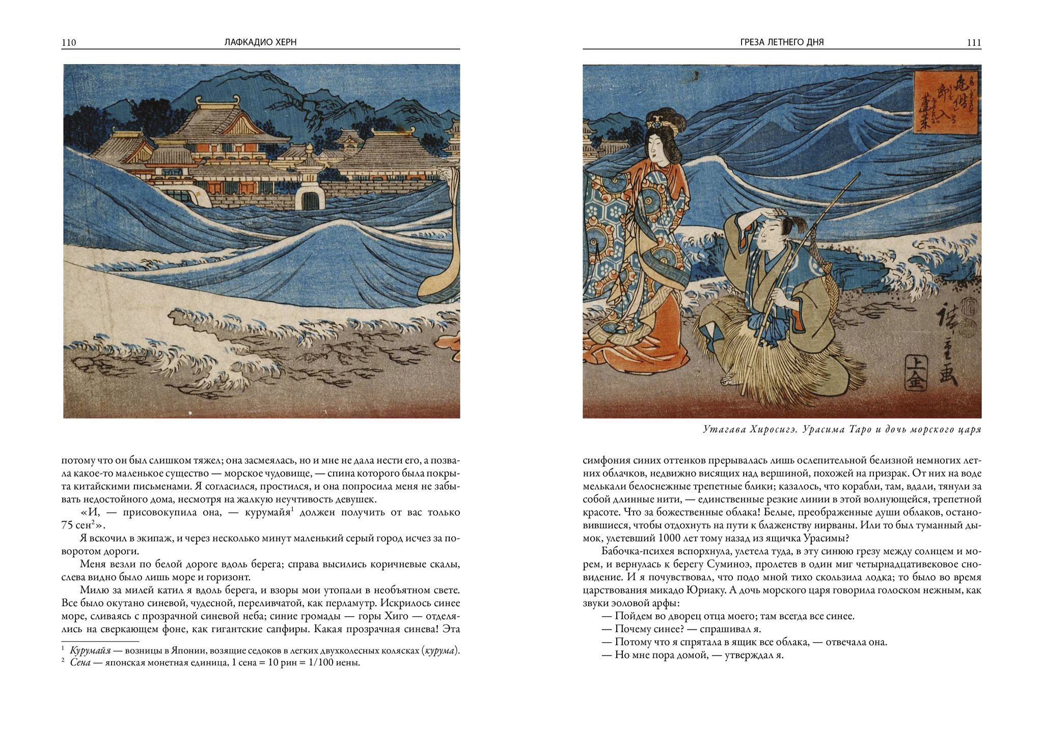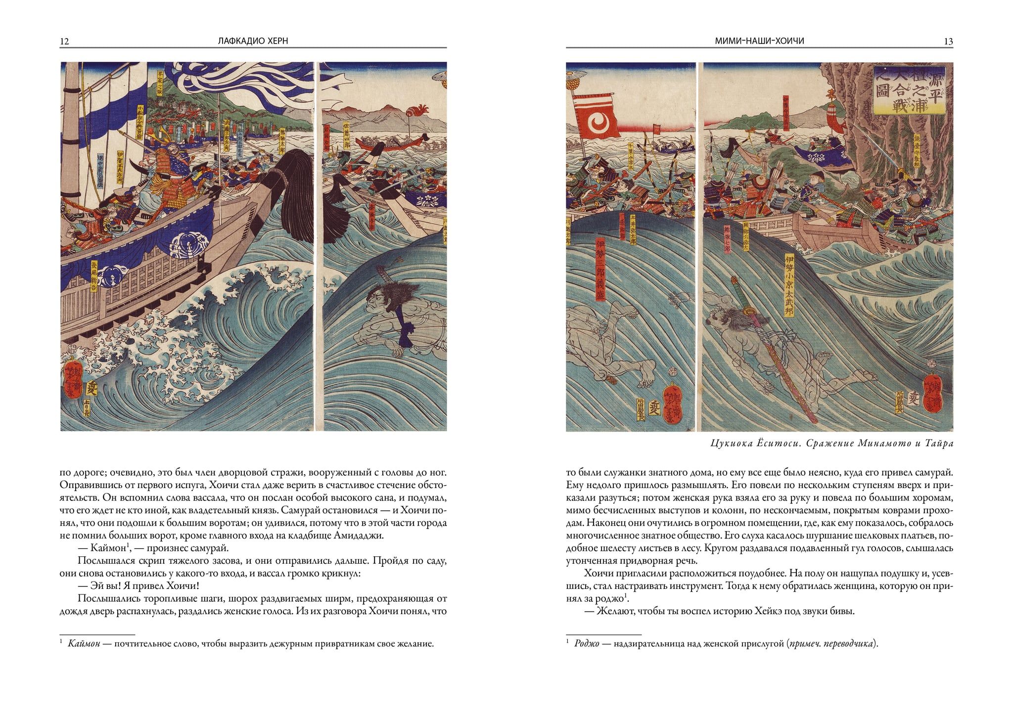 Сборник включает так называемые кайданы — старинные таинственные, «роковые» японские притчи и сказки. Они были любовно собраны под одной обложкой в начале XX века американцем британского происхождения Лафкадио Херном. Последние годы своей жизни он провел в Японии, искренне полюбив старинный дух этой страны. Произведения сборника проиллюстрированы великолепными цветными рисунками японских художников XIX века. Знакомство с японскими кайданами не только развлекает читателя, но и позволяет лучше понять уникальную культуру этой страны. Глубинная основа культуры любого народа — древние легенды, мифы, предания, сказки. В них отражаются его обычаи, верования, отношение к природе, этические и эстетические взгляды. Традиционный фольклорный жанр в Японии — кайданы — диковинные легенды о необычных суевериях, страшные роковые рассказы о призраках и чудесах, о встречах человека со сверхъестественным: демонами, ведьмами, оборотнями и т. п. В начале XX в. они были собраны и переведены на английский язык ирландско-американским прозаиком, переводчиком и востоковедом, специалистом по японской литературе Лафкадио Херном (1850–1904). Он был назван так же, как и греческий остров в Ионическом море — Лефкас, или Лефкада, на котором в 1850 г. появился на свет. Отец Лафкадио — ирландец, военный врач, мать — коренная гречанка. Первые годы жизни мальчика под солнечным лазурным небом Греции были безоблачными. А потом разразилась семейная драма. Отец увез семью в Англию. Пейзажи и климат Туманного Альбиона подействовали на мать мальчика угнетающе, и вскоре она вернулась в любимую Грецию. Брак распался. Лафкадио остался с отцом, который не слишком заботился о воспитании сына, до своего совершеннолетия находившегося под присмотром старой тетки. Распад семьи стал трагедией для юноши. Возможно, в этом таилась причина его страсти к мистике, к потустороннему миру, ведь в реальности не было ни радости, ни счастья. И Лафкадио уехал в Америку. Солнечный Новый Орлеан, в котором он осел, напоминал жизнерадостную Грецию. Здесь воспрял духом и начал писать веселые фельетоны, приводившее в восторг местных жителей. Однако счастливый период в его жизни был недолгим — его сменили разочарования и одиночество. В 1890 г. Лафкадио убегает от себя на край земли — в далекую Японию, работает там американским корреспондентом. Писатель восторгается древним духом этой страны, столь близкой его романтической натуре. Он увлекается буддийской культурой, посещает старинные монастыри, жадно вслушивается, всматривается в страшные истории о сверхъестественном. Но противоречия между рациональным настоящим и древней, таинственной Японией не давали покоя мечущийся душе Лафкадио. Он как будто всегда находился меж двух миров — реальным и ирреальным. Желание сохранить уникальный образ Древней Японии, показать его людям подтолкнуло Лафкадио к составлению сборника кайданов, книги, которую вы держите в руках. Она проиллюстрирована утонченными гравюрами японских художников XIX в., которые позволяют глубже понять и почувствовать эту богатую красками страну.