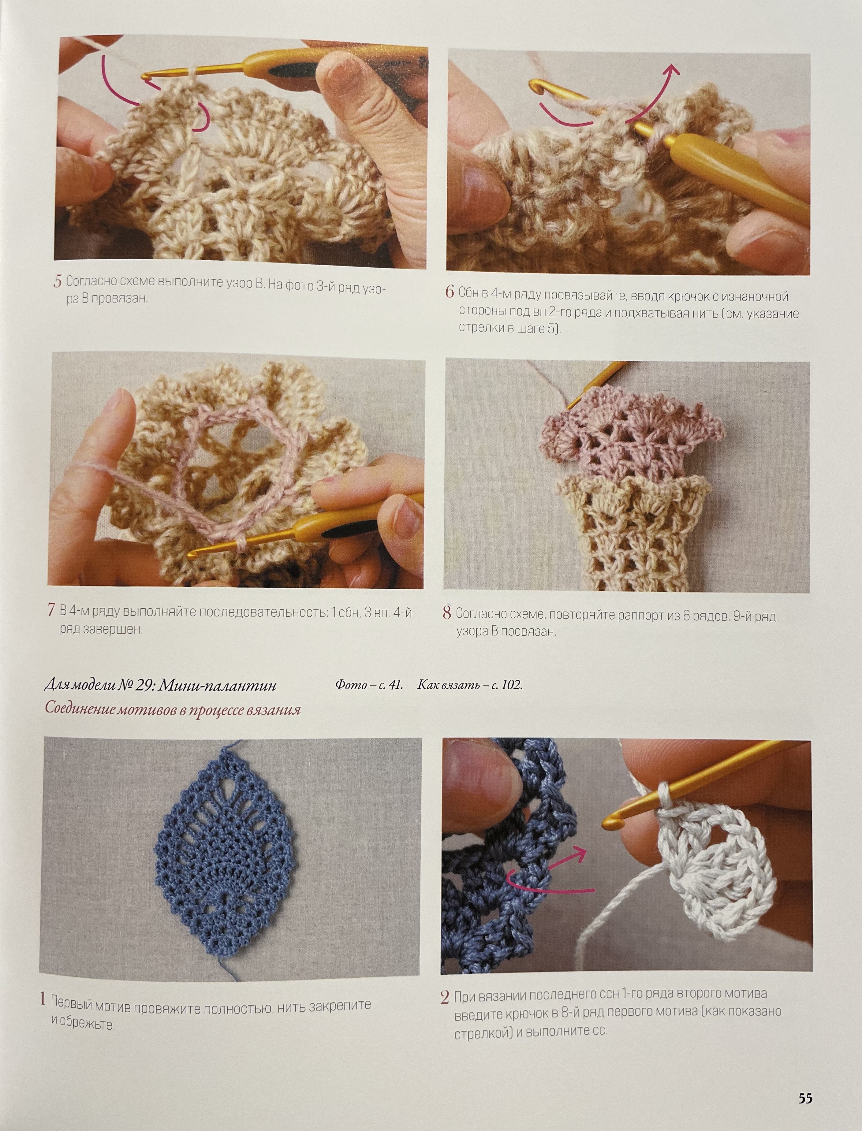 - рекомендации по подбору пряжи, инструментов и сочетанию цветов.
