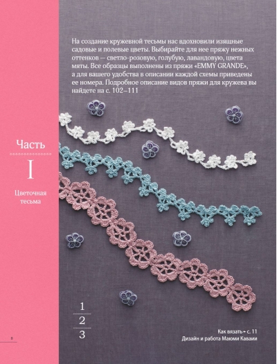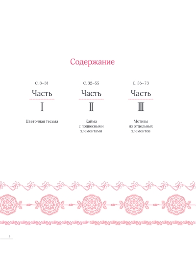 Изысканные бордюры, края и окантовки от лучших японских мастеров с четкими и понятными схемами, удивительными иллюстрациями, примерами использования для декора одежды, изготовления аксессуаров, оформления предметов интерьера или подарочной упаковки, излюбленные в японской традиции цветочные мотивы, удивительное разнообразие, от геометрии до фантазийных композиций, от снежно-белых до пастельных или ярких оттенков.