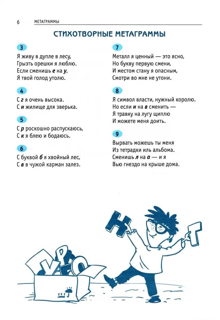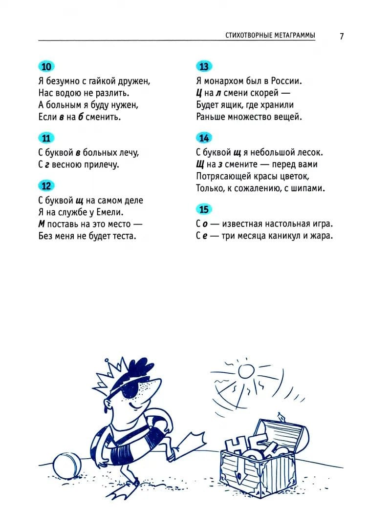 В книге представлено около 400 словесных головоломок разного типа и разного уровня сложности: шарады, анаграммы, метаграммы, логогрифы, палиндромы, головоломные тестовые задачи и многое другое. Все типы подробно разъясняются, все головоломки снабжены ответами.