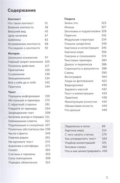 Вы найдете в книге более 50 инструментов улучшения текста. В разделе "Контекст" автор покажет, как справиться с предвзятостью читателей и настроить их на верное восприятие информации. В разделе "Интерес" — как превратить скучный текст в увлекательный, не меняя его содержания. Раздел "Текст" посвящен использованию примеров, антипримеров, аналогий, метафор, сюжетности и слоганов — тому, что поможет адресату правильно понять написанное вами. В разделе "Подача" представлены инструменты мгновенного воздействия: как донести главное заголовком, схемой или фотографией.