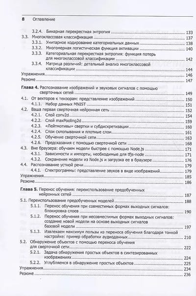 Умные веб-приложения захватили мир, а реализовать их в браузере или серверной части позволяет TensorFlow.js. Данная библиотека блестяще портируется, ее модели работают везде, где работает JavaScript. Специалисты из Google Brain создали книгу, которая поможет решать реальные прикладные задачи. Вы не будете скучать над теорией, а сразу освоите базу глубокого обучения и познакомитесь с продвинутыми концепциями ИИ на примерах анализа текста, обработки речи, распознавания образов и самообучающегося игрового искусственного интеллекта.