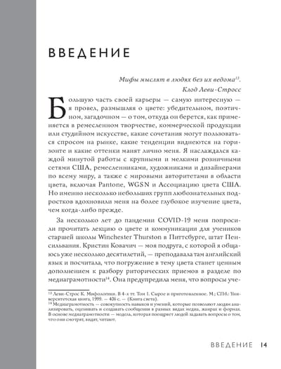 Эта книга — настоящее социокультурное исследование, выходящее далеко за пределы дизайна и творчества. Разнообразие примеров разных эпох и их глубокий анализ учит расшифровывать визуальные сообщения, которыми заполнен современный мир, и дает возможность разобраться, как цвет влияет на наше восприятие: почему один и тот же цвет может быть и символом власти, смерти и плодородия, а другой — символом радушия, страсти и ярости? Как порой полярные смыслы соседствуют рядом? И так ли уж они противоречивы?