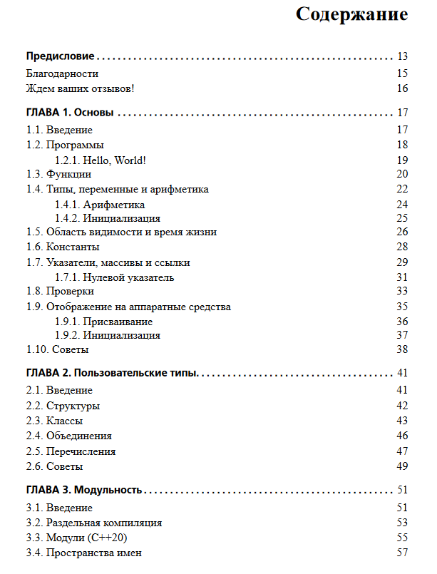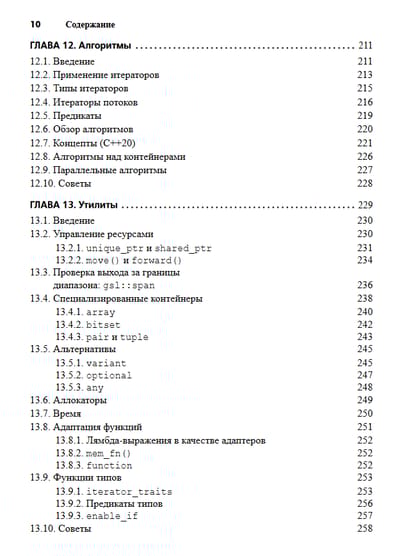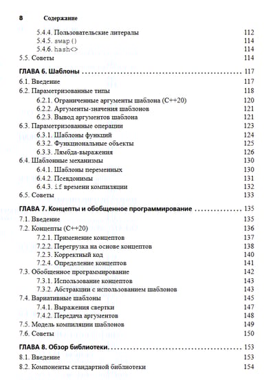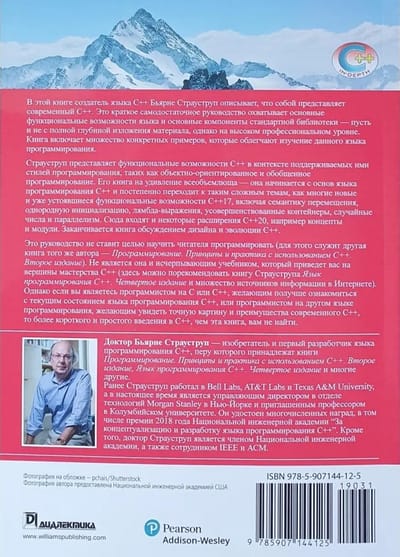 Страуструп представляет функциональные возможности C++ в контексте поддерживаемых ими стилей программирования, таких как объектно-ориентированное и обобщенное программирование. Его книга на удивление всеобъемлюща - она начинается с основ языка программирования C++ и постепенно переходит к таким сложным темам, как многие новые и уже устоявшиеся функциональные возможности C++17, включая семантику перемещения, однородную инициализацию, лямбда-выражения, усовершенствованные контейнеры, случайные числа и параллелизм. Сюда входят и некоторые расширения С++20, например концепты и модули. Заканчивается книга обсуждением дизайна и эволюции C++. Это руководство не ставит целью научить читателя программировать (для этого служит другая книга того же автора - Программирование. Принципы и практика с использованием C++. Второе издание). Не является она и исчерпывающим учебником, который приведет вас на вершины мастерства C++ (здесь можно порекомендовать книгу Страуструпа Язык программирования C++. Четвертое издание и множество источников информации в Интернете). Однако если вы являетесь программистом на С или C++, желающим получше ознакомиться с текущим состоянием языка программирования C++, или программистом на другом языке программирования, желающим увидеть точную картину и преимущества современного C++, то более короткого и простого введения в C++, чем эта книга, вам не найти.