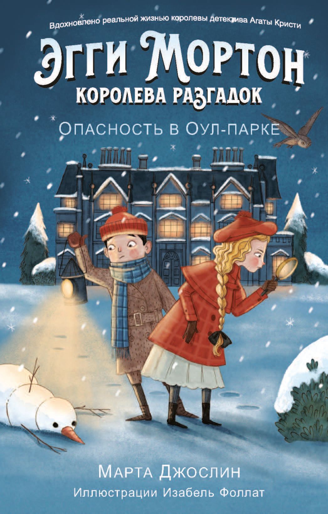 «Опасность в Оул-парке» — вторая книга серии о расследованиях и приключениях двенадцатилетних детективов Эгги Мортон и Эктора Пэро, чьими прообразами стали Агата Кристи и самый известный персонаж её произведений. Королеве разгадок и её другу предстоит столкнуться с новым преступлением, произошедшим на этот раз прямо в особняке, куда юные друзья приехали на зимние праздники. Каждый здесь оказывается под подозрением и каждому угрожает опасность стать новой жертвой злодея, от которого негде скрыться в доме, отрезанном от внешнего мира снежной бурей. Даже полиция, прибывшая расследовать это дело, не может покинуть место событий до самой разгадки, которая, конечно же, невозможна без логических умозаключений и решительных действий двух детективов-подростков, а также их новых и старых друзей. Как и в первой книге, «Тело под роялем», героев ждут хитроумные загадки и необъяснимые поначалу явления, тёмные истории прошлого и нешуточные испытания в настоящем, а читателей — неожиданные повороты сюжета, сохраняющие интригу на протяжении всего произведения, искренние переживания, тонкий юмор и атмосфера изящной английской жизни начала XX века.