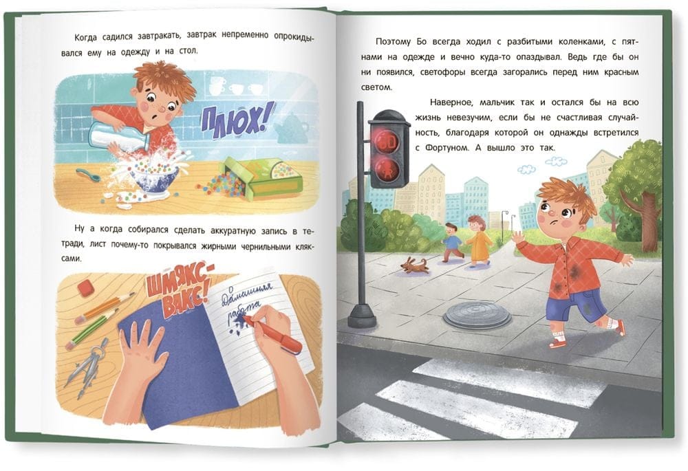 Это добрая и светлая книга о мальчике, который постоянно попадал в различные неприятности и считал себя совершенно неудачливым. Если он собирался переходить дорогу, то непременно загорался красный сигнал светофора. Покупал мороженое - и тут же ронял его. Открывал тетрадку - и ручка оставляла кляксу на чистенькой странице! Как тут не загрустить?
