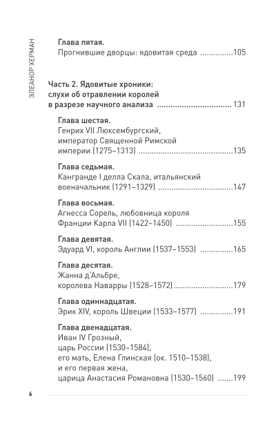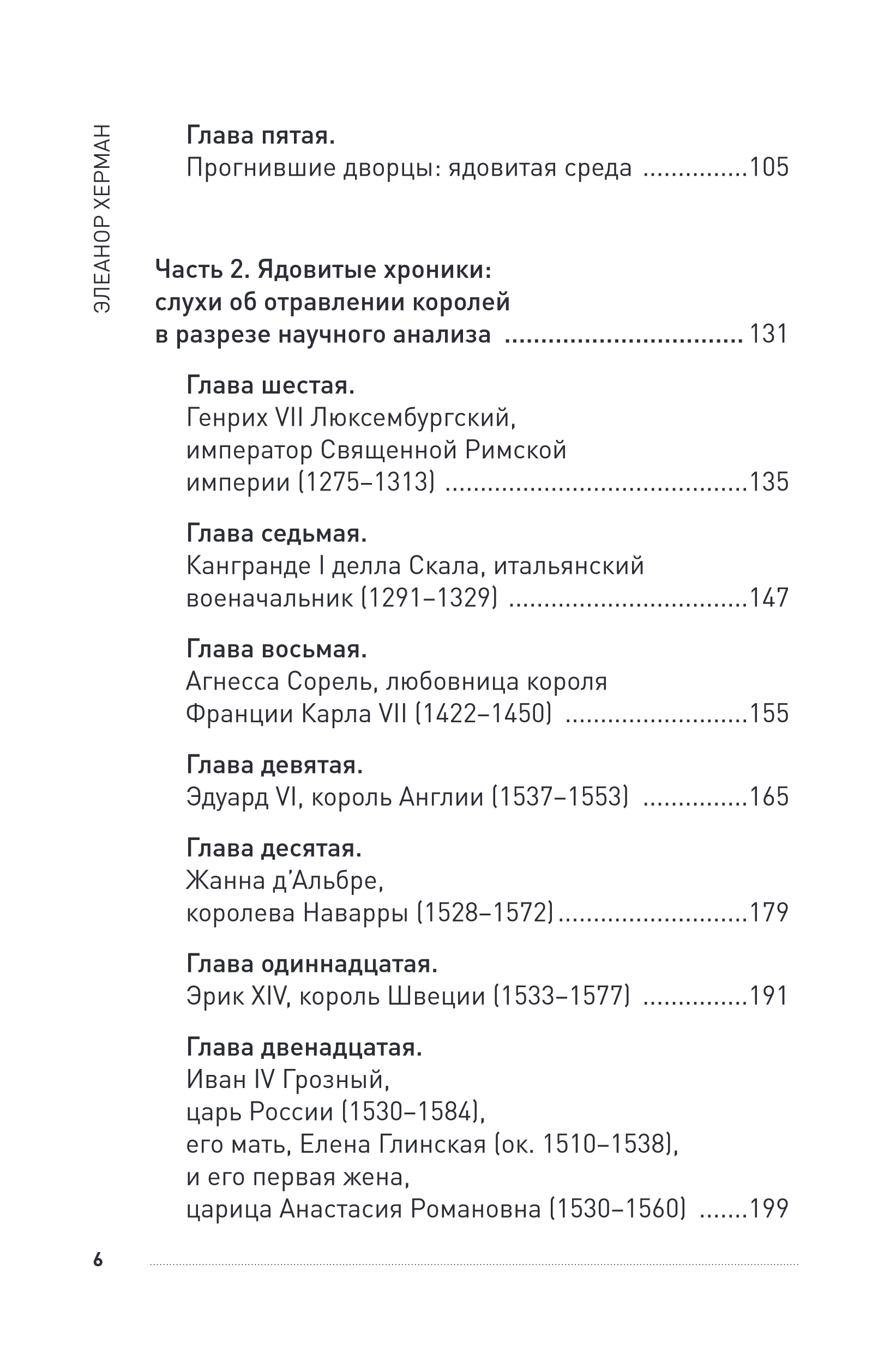 По иронии судьбы, короли и королевы, так тщательно оборонявшиеся от ядов, ежедневно и бессознательно травили себя собственноручно — косметика на основе свинца и ртути, крем для кожи с мышьяком, напитки на основе свинцовых опилок и ртутные клизмы были совершенно привычными спутниками королевских особ. В своей книге Элеанор Херман сочетает многолетние уникальные изыскания в медицинских архивах и передовые достижения судебно-медицинской экспертизы для того, чтобы рассказать правдивую историю блистательных и роскошных дворцов Европы: антисанитария, убивающая косметика, ядовитые лекарства и вездесущие экскременты.