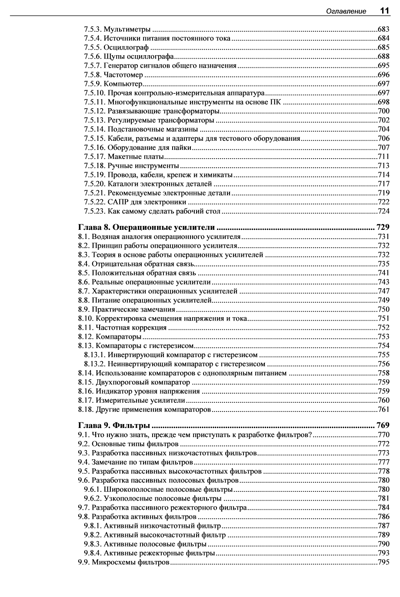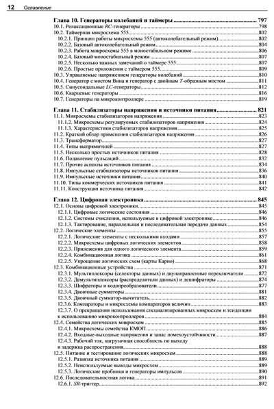 В практическом руководстве излагаются основы электричества и разработки электронных устройств. Рассмотрено применение базовых компонентов, полупроводников, оптоэлектронных элементов, и датчиков. Описана разработка и практическое применение операционных усилителей, фильтров, генераторов колебаний, таймеров, стабилизаторов и источников питания. Показано использование логических микросхем, жидкокристаллических и светодиодных дисплеев. Рассмотрены микроконтроллеры и платформы для разработки прототипов устройств, включая плату Arduino. Описано подключение электродвигателей постоянного тока, сервоприводов и шаговых двигателей, а также микрофонов, аудиоусилителей и громкоговорителей. Материал сопровождается подробными и доходчивыми инструкциями, принципиальными схемами и иллюстрациями. В четвертом издании книги добавлены полностью новые главы по датчикам, микроконтроллерам, модульной электронике и самым последним версиям программных инструментов. Книга позволяет приобрести знания в области электроники, необходимые для преобразования инновационных идей в функционирующие устройства.