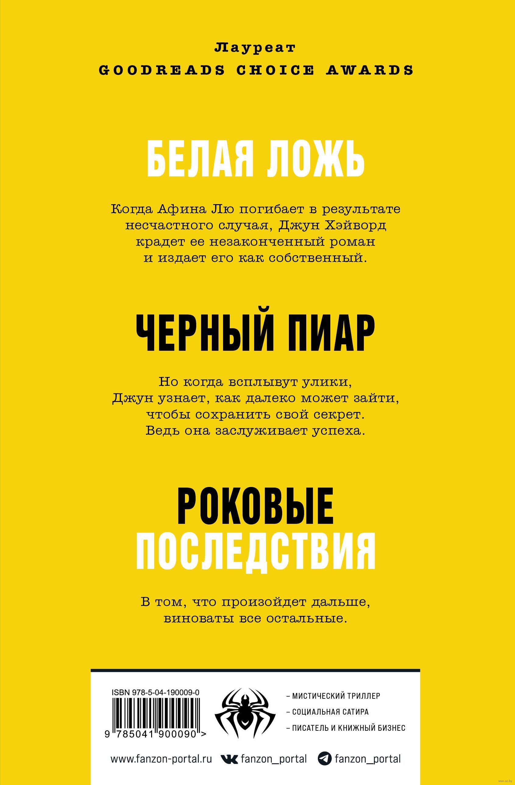 Поэтому, когда Джун становится свидетелем гибели Афины в результате несчастного случая, она действует импульсивно: крадет неоконченный роман коллеги о неизвестном подвиге китайских рабочих на фронтах Первой мировой войны. Что с того, что Джун отредактирует черновик Афины и отправит его литагенту как собственный труд? Что с того, что она позволит своему новому издателю опубликовать его под псевдонимом Джунипер Сонг и поставить на обложку этнически неоднозначную фотографию автора? Когда история заслуживает того, чтобы ее рассказали, совсем не важно, кто будет рассказчиком, не так ли?. По крайней мере, сама Джун считает именно так, а список бестселлеров New York Times это подтверждает. Но девушка не может выйти из тени Афины, а появляющиеся улики и негативная реакция сторонников социальной справедливости грозят ей отменой. И теперь Джун предстоит узнать, как далеко она готова зайти, чтобы сохранить тайну и не лишиться всего того, чего она заслуживает по праву.
