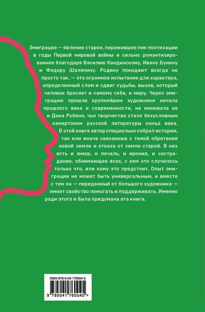 Эмиграция – явление старое, пережившее пик поэтизации в годы Первой мировой войны и сильно романтизированное благодаря Василию Кандинскому, Ивану Бунину и Федору Шаляпину. Родину покидают всегда не просто так, - это огромное испытание для характера, определенный слом и сдвиг судьбы, вызов, который человек бросает и самому себе, и миру. Через эмиграцию прошли крупнейшие художники начала прошлого века и современности, не миновала ее и Дина Рубина, чье творчество стало безусловным камертоном русской литературы конца века. В этой книге автор специально собрал истории, так или иначе связанные с темой обретения новой земли и отказа от земли старой. В них есть и юмор, и печаль, и ирония, и сострадание, обнимающее всех, с кем это случилось только что или кому это предстоит. Опыт эмиграции не может быть универсальным, и вместе с тем он - переданный от большого художника - имеет свойство помогать и поддерживать. Именно ради этого и была придумана эта книга.