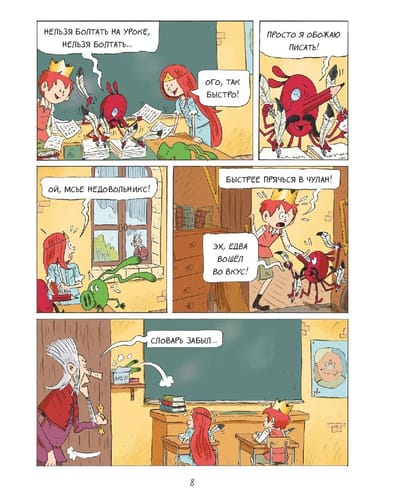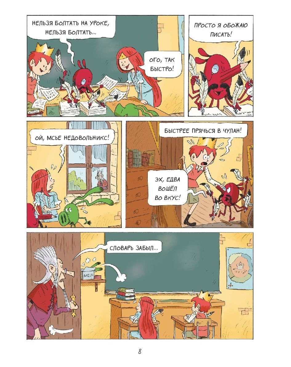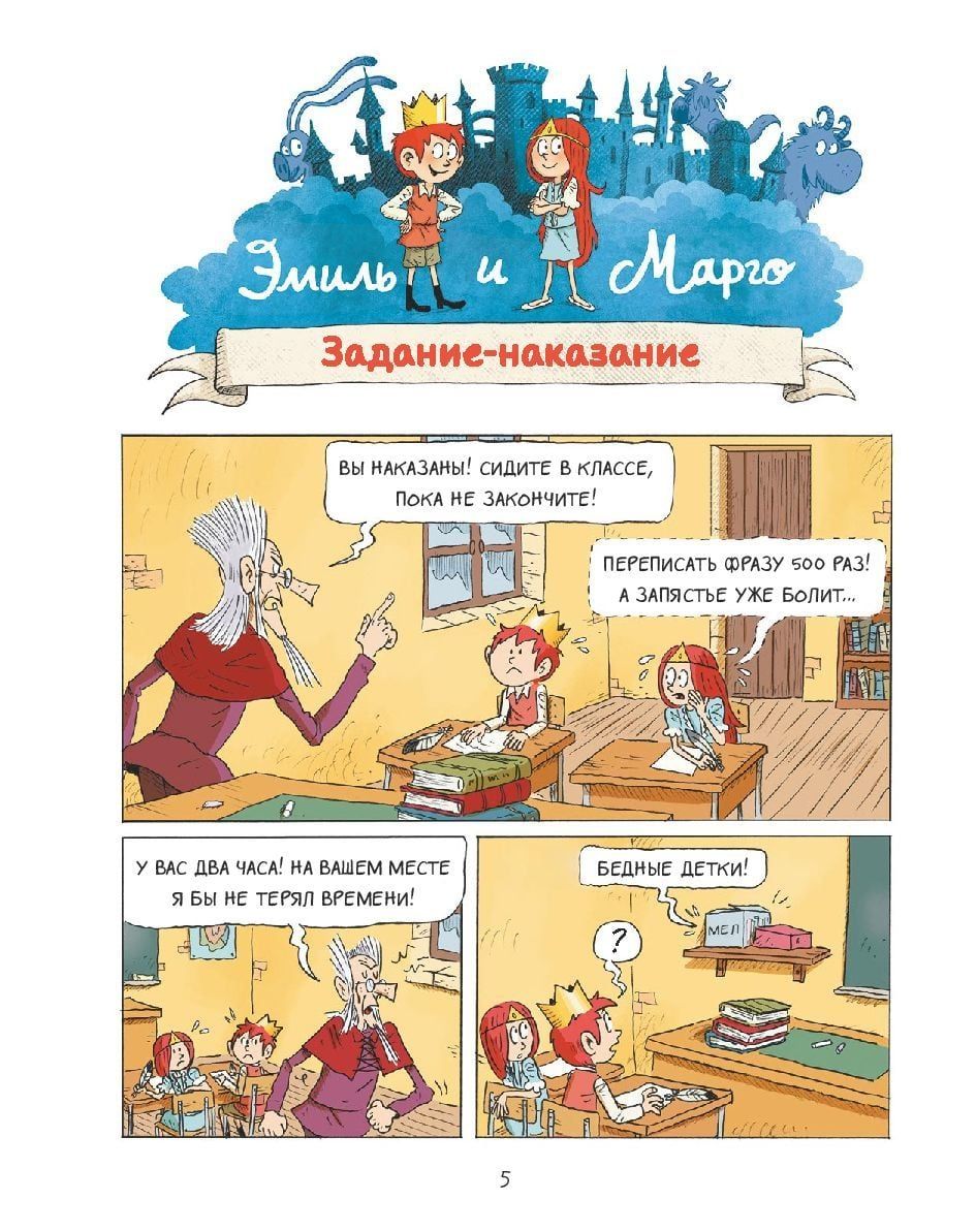 Эмиль и Марго — королевские дети, поэтому они должны быть мудрыми, вежливыми, разумными и хорошо себя вести! Веселье в замке допускается только с чистыми руками и ушами и строго в тщательно выглаженных вещах... Только когда их друзья монстры заглядывают в гости, Эмиль и Марго могут наконец-то повеселиться по-настоящему. Отправиться в Монстротеку, где вежливость и правила под запретом, побаловать себя семиярусным бургером в «Монстробургере» и даже посетить настоящий Монстросклад, где есть все на свете для хаоса и бардака. Ведь чтобы быть счастливым, нужно просто находить время для шалостей! О серии: Эмиль и Марго — озорные принц и принцесса. Как и все дети, они болеют, дурачатся, не очень-то любят учить уроки и заниматься уборкой. Эмиль и Марго живут в замке рядом с лесом, населенным монстриками. С такими соседями не соскучишься — принц и принцесса постоянно попадают в переделки с монстриками, сводя с ума присматривающую за ними мадам Дисциплинду. Фишки книги: — Волшебный мир, населенный забавными монстриками — не страшными, а добрыми и дружелюбными. — Яркие герои, которые будут близки детям. — Веселые, добрые истории о повседневных делах с примесью волшебства. — Описанные ситуации знакомы каждому ребенку: принц и принцесса убираются в комнате, болеют, ходят в школу и никогда не забывают озорничать. — Короткие рассказы (в каждой главе — всего 6 страниц) идеально подойдут для маленьких читателей: перед сном можно прочитать 2-3 истории и спокойно засыпать. — Знакомство с серией вы можете начать с любого тома, книги не связаны единым сюжетом. — Поможет ребенку начать читать самостоятельно. Для кого эта книга: Для детей от 5 лет. Для всей семьи, если вы любите читать и веселиться вместе. Для всех любителей комиксов. Для поклонников серии.