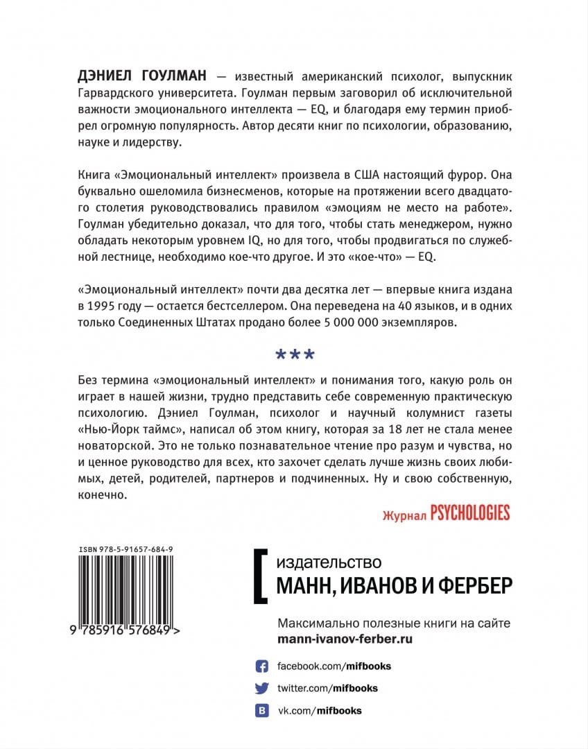 Американский психолог, признанный эксперт в области эмоционального интеллекта Дэниел Гоулман утверждает, что наши эмоции играют в достижении успеха в семье и на работе гораздо большую роль, чем это принято считать. Но что же такое «эмоциональный интеллект»? Можно ли его измерить? Чем отличается «обычный» интеллект от «эмоционального» и почему обладатели первого зачастую уступают место под солнцем обладателям второго? Хотите узнать ответы и научиться справляться с унынием, гневом, вспыльчивостью, депрессией и стать успешнее? Читайте эту книгу. Она будет полезна не только студентам и преподавателям, но и родителям.