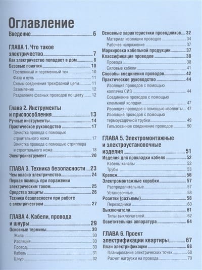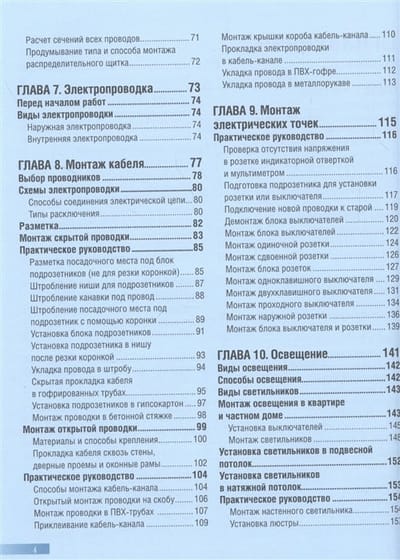 В ней пошагово и с большим количеством иллюстраций рассказано обо всем, что нужно знать и новичку, и профессионалу. Это именно практическое пособие, в котором вы узнаете о материалах и инструментах, кабелях и проводах, монтаже электропроводки дома и на улице, особенностях электрофикации кухни и санузла. Теперь вы легко сможете понять причины почти любых неисправностей и устранить их, соблюдая технику безопасности. Откроете в себе настоящего гуру электрики!