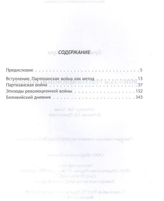 Эрнесто Че Гевара – один из легендарных политических деятелей XX века. Выходец из богатой аргентинской семьи, он выбрал для себя путь революции. Являясь одним из ближайших сторонников Фиделя Кастро, «команданте» Че разделил с ним триумф революции на Кубе, а потом занимал ряд ответственных постов в правительстве Кастро. Затем он сражался за революционные идеалы в Конго, а позже – в Боливии, где был захвачен в плен и расстрелян. После своей гибели Че Гевара приобрел ореол мученика революции и стал кумиром леворадикальной молодежи. В книге, представленной вашему вниманию, разбираются особенности партизанского движения во всех его формах. Гевара творчески осмыслил свой опыт партизанской войны и прибавил к этому практические выводы о партизанской борьбе в состоянии мира, – в том числе в городских условиях. Помимо этого, автор рассуждает об особенностях мирового развития в XX веке и делает прогнозы относительно будущего революционного движения.