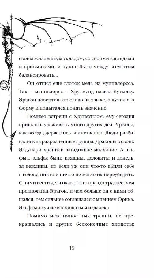 Прошел год с тех пор, как Эрагон покинул Алагейзию. Он нашел идеальное место для строительства нового дома Всадников и драконов, и ежедневно ему приходится решать множество задач. Впрочем, несмотря на разногласия, все — и упрямые гномы, и воинственные ургалы, и надменные эльфы, и молчаливые Элдунари — стараются помочь Эрагону.