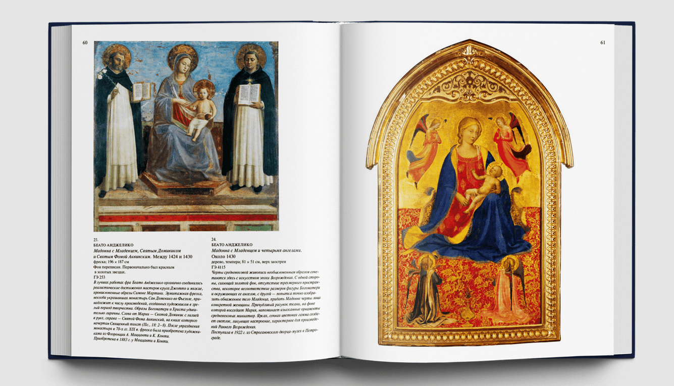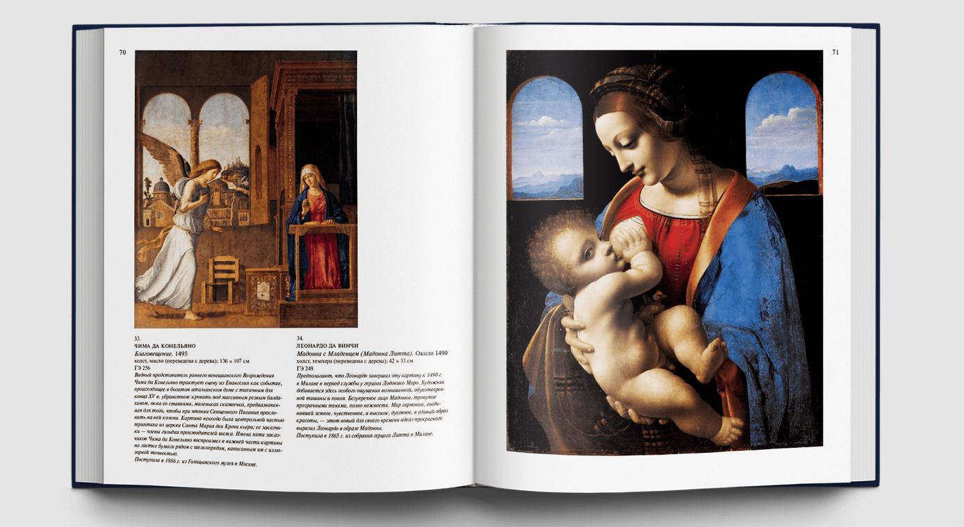 За несколько веков в музее была собрана богатейшая коллекции живописи — великие полотна, созданные мастерами разных стран и эпох. В Эрмитаже хранятся работы Тициана и Рембрандта, Караваджо и Джорджоне, Симоне Мартини и Беато Анджелико, Тьеполо, Рубенса, Ван Дейка, Снейдерса и многих других. Широко и полно представлено в собрании искусство ХIX — XX веков: Сезанн, Ван Гог, Гоген, Матисс, Буден, Вламинк, Пикассо, Кандинский и Малевич. Книга построена по хронологическому принципу, и каждому периоду истории живописи предшествует емкая, но познавательная характеристика.