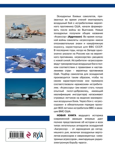 Новая книга ведущего историка современной авиации впервые дает полное представление об истории и всех типах летательных аппаратов эскадрилий «Аагрессор» — от зарождения до сегодняшнего дня, включая эскадрильи вертолетов-агрессоров и сверхсекретных «электронных агрессоров», имитирующих радио-электронную борьбу «врага».