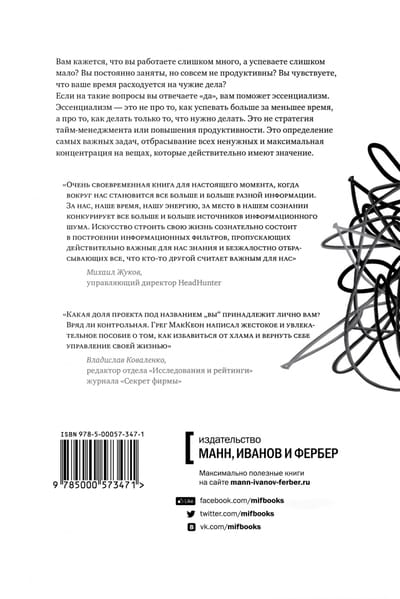 Эта книга для тех, кто погряз в повседневных заботах и кому не хватает времени на самое важное. Автор книги писатель и психолог Грег Маккеон напоминает: ваши время и энергия бесценны, их нельзя тратить на те вещи и людей, которые на самом деле не важны для вас. Вы и только вы должны определять, что стоит ваших ограниченных ресурсов. Эссенциализм – это новый подход, который позволит вам делать меньше, но лучше – во всех сферах вашей жизни. Он очень четко разъясняет, как сфокусироваться на самом важном и избавиться от всего ненужного, что вас окружает и мешает сосредоточиться на приоритетах.