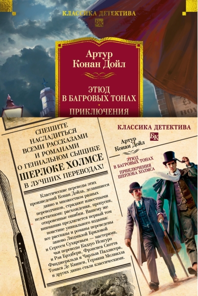 Вашему вниманию предлагается первый том (роман «Этюд в багровых тонах», сборник «Приключения Шерлока Холмса») из четырехтомника с полным переводом всего холмсовского канона. Это воистину уникальное издание: все произведения цикла переведены заново Людмилой Бриловой и Сергеем Сухаревым — мастерами, чьи переводы Кадзуо Исигуро и Рэя Брэдбери, Фрэнсиса Скотта Фицджеральда и Чарльза Паллисера, Томаса Де Квинси, Германа Мелвилла и других давно стали классическими. При этом каждый том снабжен большим числом классических рисунков и дополнительными материалами: предисловия к ранним публикациям, воспоминания Конан Дойла, касающиеся тех или иных произведений, некоторые интервью писателя.
