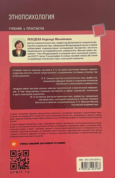 Учебник познакомит будущих специалистов-психологов с основными теориями и результатами эмпирических исследований в этнической и кросс-культурной психологии, проведенных в разных странах мира. В нем впервые объединены главы, содержащие теории и результаты этнопсихологических исследований и этнопсихологический практикум (методы исследования, упражнения, кейсы к основным теоретическим главам, а также - методику тренинга этнокультурной компетентности и толерантности), что позволит студентам посмотреть на проблемы межэтнического взаимодействия с разных точек зрения: студента-психолога, будущего эксперта, и психолога-практика, работающего с психологическими проблемами межэтнических отношений.