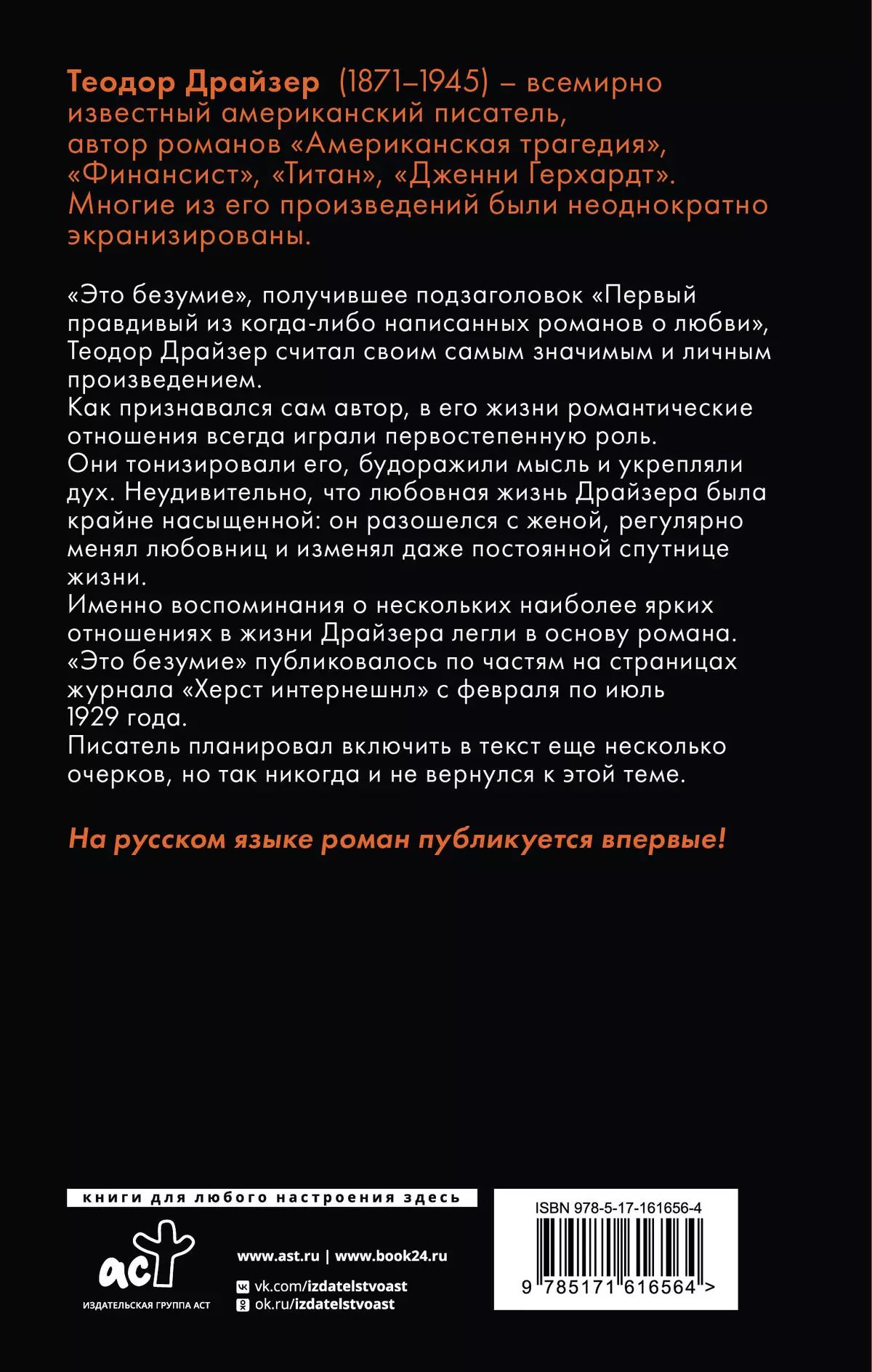 «Это безумие», получившее подзаголовок «Первый правдивый из когда-либо написанных романов о любви», Теодор Драйзер считал своим самым значимым и личным произведением.