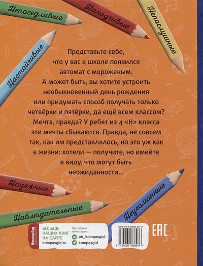 Представьте себе, что у вас в школе появился автомат с мороженым. А может быть, вы хотите устроить необыкновенный день рождения или придумать способ получать только четвёрки и пятёрки, да ещё всем классом? Мечта, правда? У ребят из 4 «Н» класса эти мечты сбываются. Правда, не совсем так, как им представлялось, но это уж как в жизни: хотели — получите, но имейте в виду, что могут быть неожиданности...