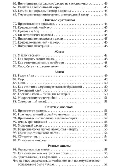 Знаете ли вы, что дым без огня бывает? Сможете ли очистить чайник от накипи? Сумеете вырастить кристаллы из обычной соли? А приготовите сливочные конфеты из молока или сладкий сырок из простокваши? Благодаря этой книге вы научитесь делать это и многое другое. Здесь собраны разнообразные и несложные химические опыты, которые можно безопасно выполнять в быту. Вы познакомитесь с химическими свойствами разных веществ — сахара, углекислого газа, белков и жиров, солей и кислот — и приобретете первоначальные знания о химии, которые обязательно пригодятся в школе. Все опыты описаны доступным языком и дополнены поясняющими пошаговыми иллюстрациями. В начале издания перечислены оборудование и реактивы, которые понадобятся для домашних экспериментов, а также подробные правила обращения со всеми приборами и веществами.