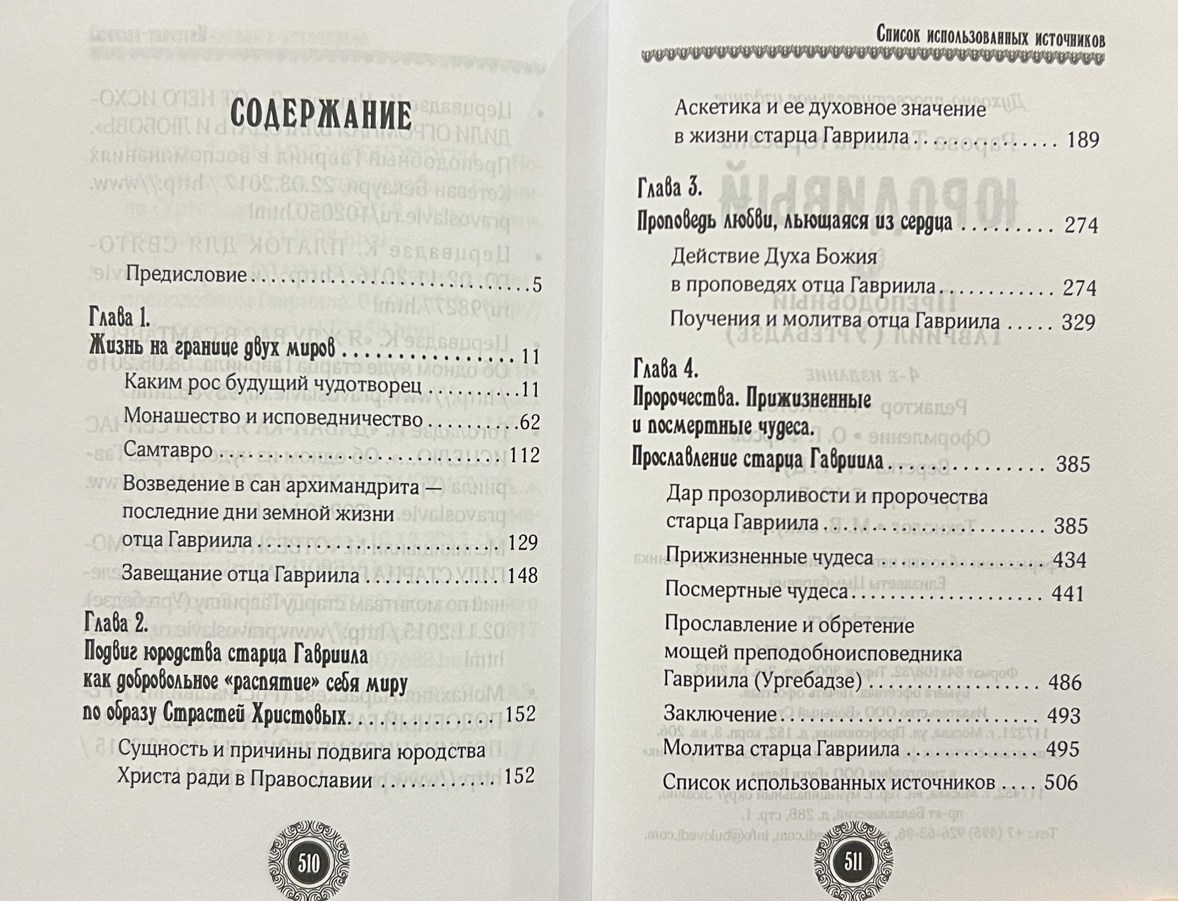 В издание вошли воспоминания о старце, рассказ о его жизненном пути, испытаниях и подвигах. Ключевое внимание уделено духовным подвигам преподобноисповедника Гавриила — юродству, проповеди Православия в годы богоборчества, несению креста за свой народ. Отдельно рассматривается суть юродства во Христе на основе святоотеческого предания. Особое внимание автор уделяет наставлениям и пророчествам отца Гавриила, особенно актуальным для современного человека, стремящегося ко спасению души.