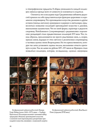 Европейские музеи появились благодаря личным коллекциям королей, герцогов и маркизов, таких как император Рудольф II, Альбрехт Баварский, Фердинанд Тирольский, представители династий Медичи, д’Эсте, Гонзага. Хотя порой и может показаться, что все эти изумительной красоты произведения искусства и диковинные старинные экспонаты сами собой выросли в музейных залах. Начало так называемой культуры любопытства было положено в XVI веке появлением кабинетов редкостей — комнат, в которых фанатично и скрупулезно по шкафам и шкафчикам, ящикам и ящичкам, стенам и столам располагались вещицы из мира искусства и природы, от обескураживающе безобразных до божественно прекрасных. Желание установить связь между природой и искусством, страсть к изучению мира и стремление разгадать его тайны, географические открытия, прогресс и даже простая необходимость держать в руках нечто материальное на фоне стремительно меняющейся жизни — вот главные причины возникновения кабинетов редкостей, до сих пор существующих в обличии музеев, галерей и частных собраний. Термин «кабинет искусств и редкостей» входил в употребление постепенно. Поначалу его использовали для обозначения замкнутого помещения, зачастую тесного и скрытого от посторонних глаз, предназначенного исключительно для использования доступного пространства и научного массива объектов, собранных вместе главным образом для изучения, а не для выставления на всеобщее обозрение. Во Франции XIV века предшественники этих кабинетов назывались estudes, а в Италии XV–XVI веков они стали известны как studioli. Около 1550 года в немецком языке появилось слово Kunstkammer («комната искусств»), к которому вскоре присоединилась Wunderkammer («комната чудес»). В конце XVI века эти два термина объединились в Kunstund Wunderkammer. В наше время почти повсеместно принятые немецкий термин и его национальные вариации (cabinet d’art et de curiosite, camera d’arte e di meraviglie и др.) тем не менее в течение многих лет конкурировали с более широко используемыми обозначениями, заимствованными, в частности, из мира театра (theatrum mundi, theatrum sapiente), музеев, promptuaria (хранилищ), архивов и кабинетов древностей, редкостей и диковинок.
