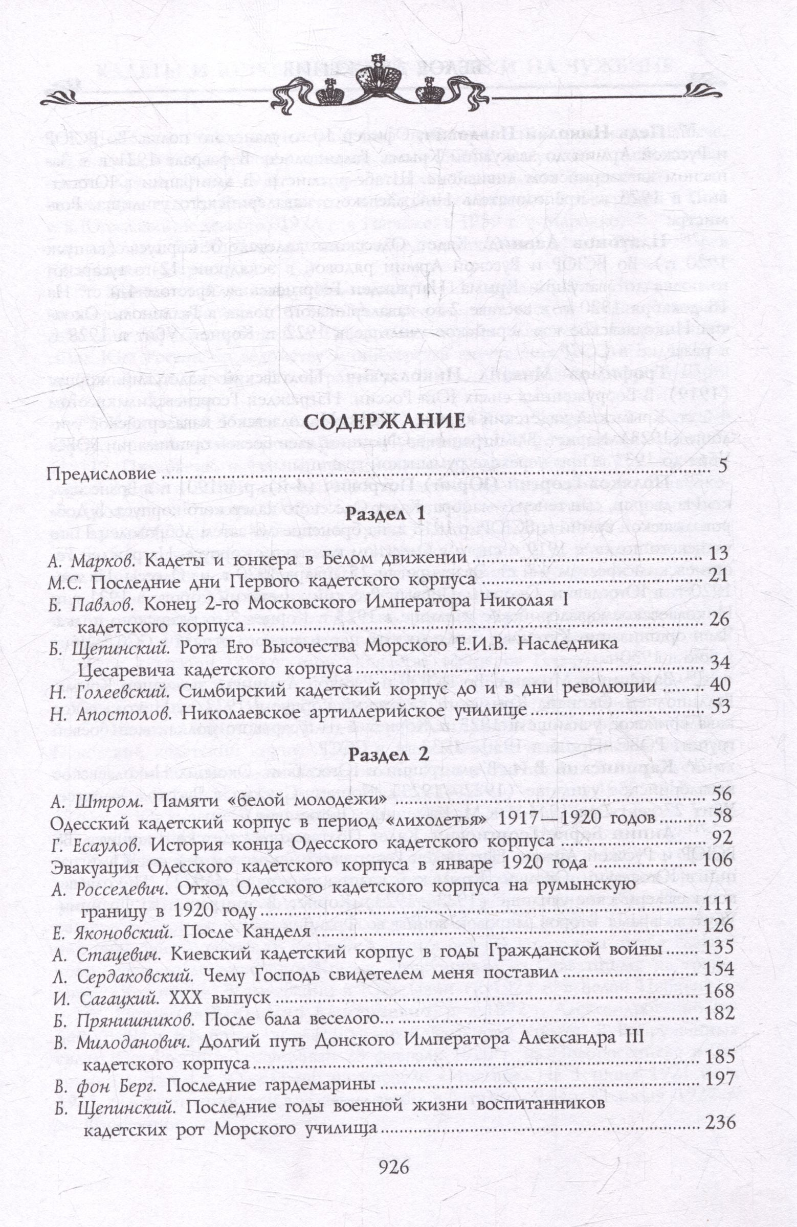 Книга представляет собой одиннадцатый том серии, посвященной истории Белого движения в России по воспоминаниям его участников. Посвящен он кадетам и юнкерам — самым юным участникам Белой борьбы. Тесно связанная с традициями своих семей и учебных заведений, военная молодежь отличалась высокой степенью патриотизма и непримиримым отношением к большевикам, разрушителям российской государственности. Юнкера и кадеты внесли весомый вклад в Белое дело и сохранение русского воинского духа на чужбине. Материалы тома практически неизвестны широкому читателю. Они снабжены уникальным справочным аппаратом, биографическими справками об авторах и героях очерков.