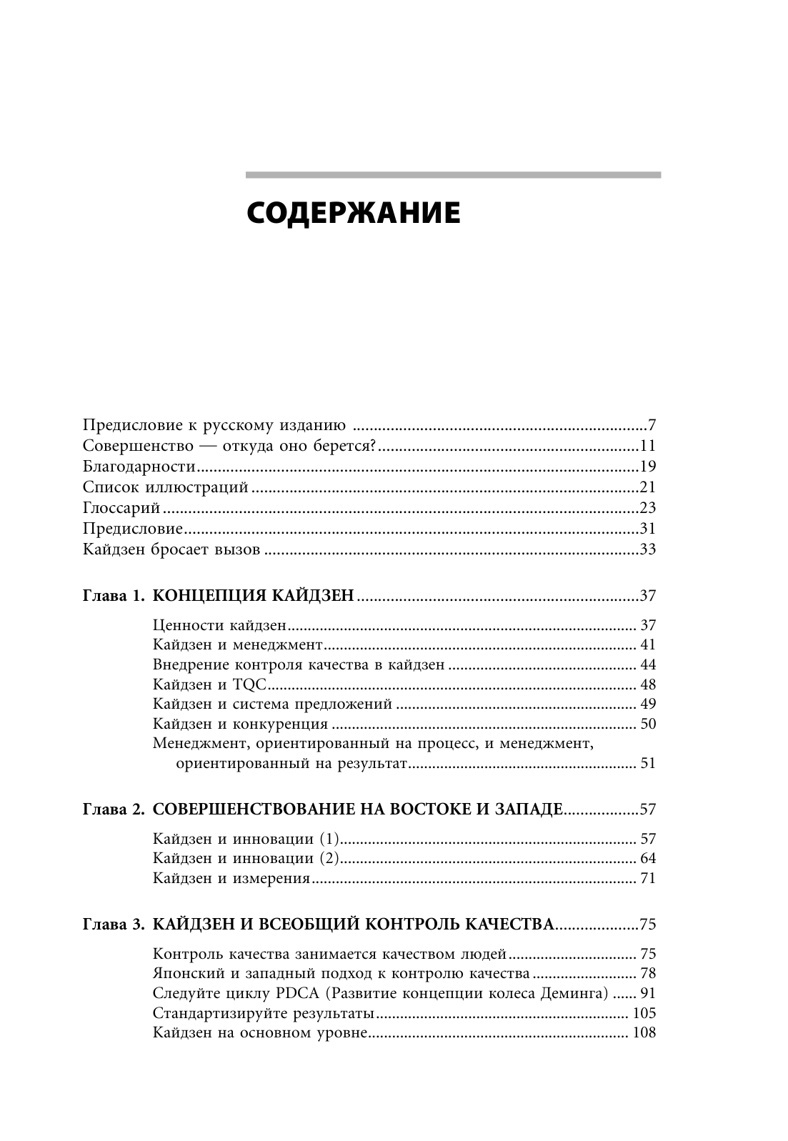 Автор впервые вводит в своей книге термин «кайдзен», подробнейшим образом освещает, что представляет собой концепция кайдзен, как она работает и чего позволяет добиться. Кроме того, он нацеливает читателя на недопущение проблем, приводя многочисленные примеры следования по пути совершенствования процессов, подводя к идее о том, что выстроенный, продуманный процесс непременно даст положительный результат.