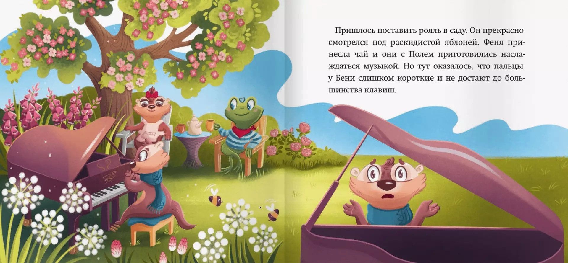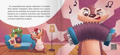 Что нужно, чтобы стать настоящим музыкантом? Конечно же, подходящий инструмент! На его поиски и отправляются наши герои – любознательные выдры Беня и Феня, их друг лягушонок Поль и домашний питомец Аксель. Вместе с ними вы узнаете, как звучат различные музыкальные инструменты и что делать, если все не получается с первого раза.