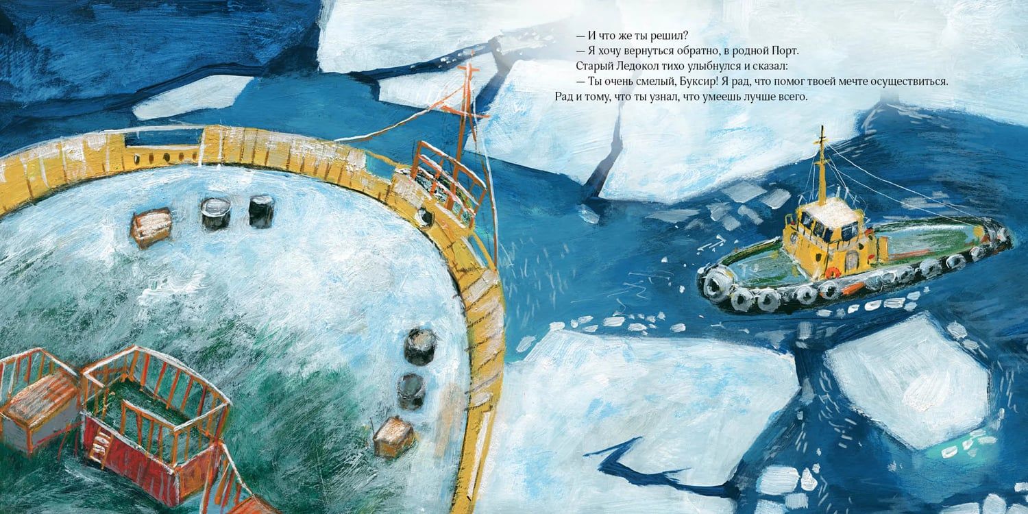 Маленький Буксир работал в Порту и мечтал увидеть мир. Слушая удивительные истории от ледоколов, он часто воображал себе, каково это — быть настоящим героем! И вот однажды Буксир решил отправиться в дальнее путешествие вместе с большим Ледоколом. Впереди его ждали захватывающие приключения!
