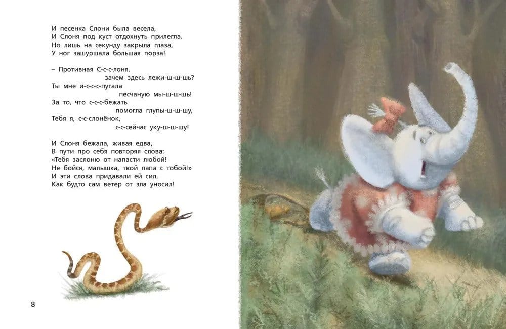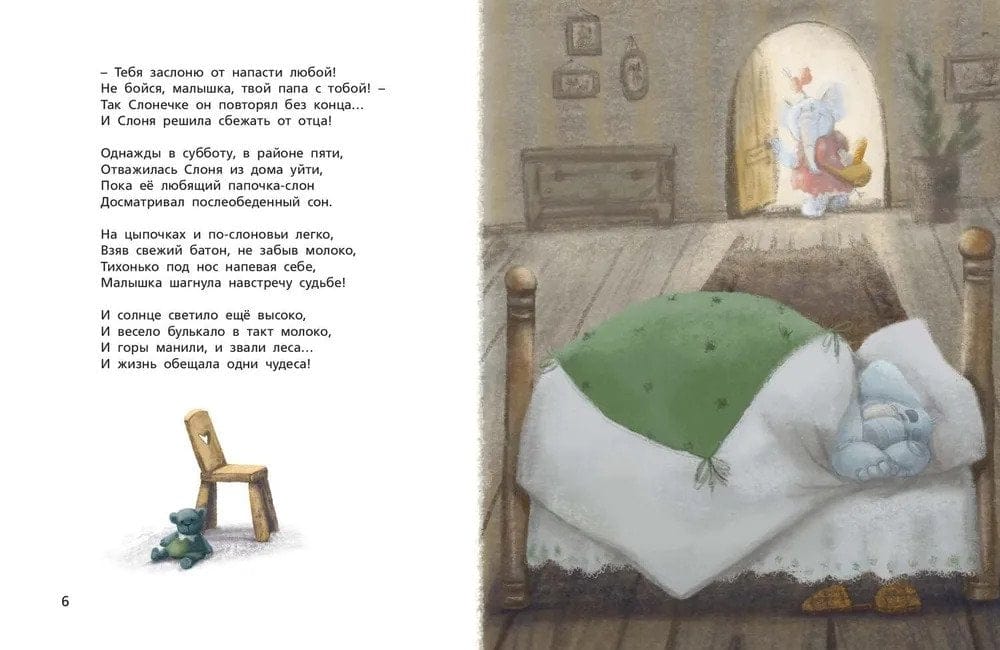 Стихотворная сказка о добродушном папе-слоне, который готов защитить любимую дочурку от любых напастей. Но однажды маленькая Слоня ослушалась папу и ушла гулять в лес одна. Вот тогда-то она и поняла, как хорошо, когда папа с тобой и как плохо, когда его нет рядом! Написала сказку Ксения Валаханович, а иллюстрации к ней нарисовала Надежда Шинкарь.