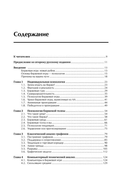 Автор этого международного бестселлера, д-р Александр Элдер, - профессиональный биржевик и эксперт по техническому анализу. Он учит, что успешная биржевая игра зависит от трех факторов: психологии, методов и контроля над риском. В первой части этой книги д-р Элдер показывает, что ключи к победе - в вашей психологии. Он учит, как стать дисциплинированным игроком и избежать эмоциональных ловушек на бирже. Затем Элдер объясняет, как найти выгодные сделки, пользуясь графиками, компьютерными индикаторами и другими инструментами анализа биржи. Вы увидите, как связать различные методы анализа в эффективную систему биржевой игры. И, наконец, вам станет ясно, как управлять деньгами на своем биржевом счете. Правила для ограничения риска важны для биржевика, как запас воздуха - для аквалангиста. Новое, расширенное издание включает в себя задачник, созданный д-ром Элдером специально для тех, кто учится биржевому делу по его книге. Каждый из более 200 вопросов и ответов привязан к определенной главе книги. Задачник включает в себя 10 тестов. Раскрыв эту книгу, вы сделали первый шаг к познанию новых методов игры на валютных, фондовых, фьючерсных и других рынках. Вам предстоит узнать, "как играть и выигрывать на бирже".