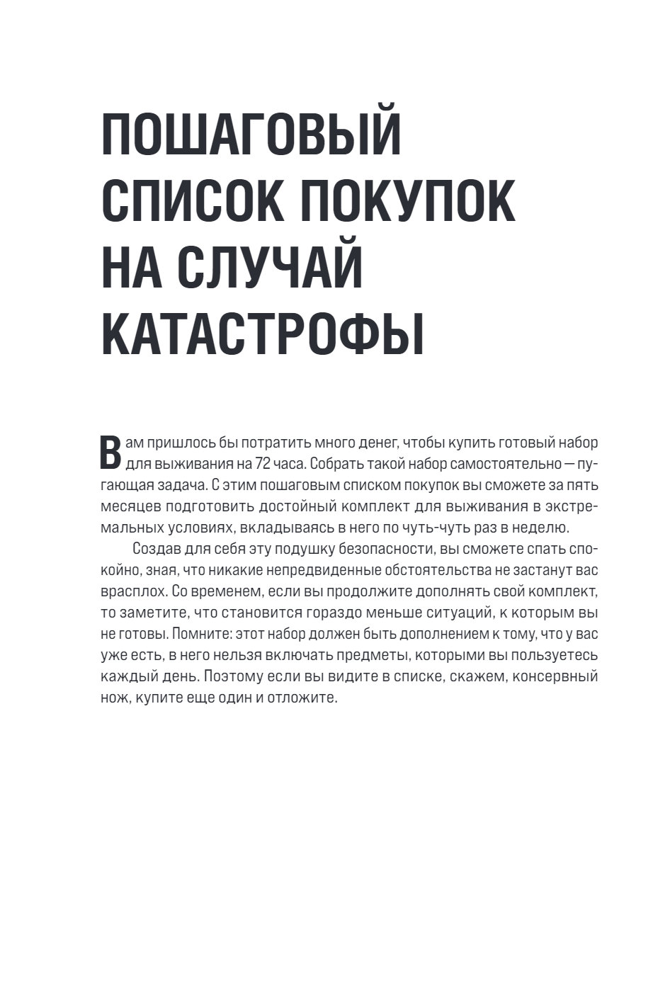Эта книга — ваш гид в мире чрезвычайных ситуаций. В ней собраны 52 практических проекта, которые пошагово научат вас навыкам выживания, а также список необходимых покупок на 21 неделю.