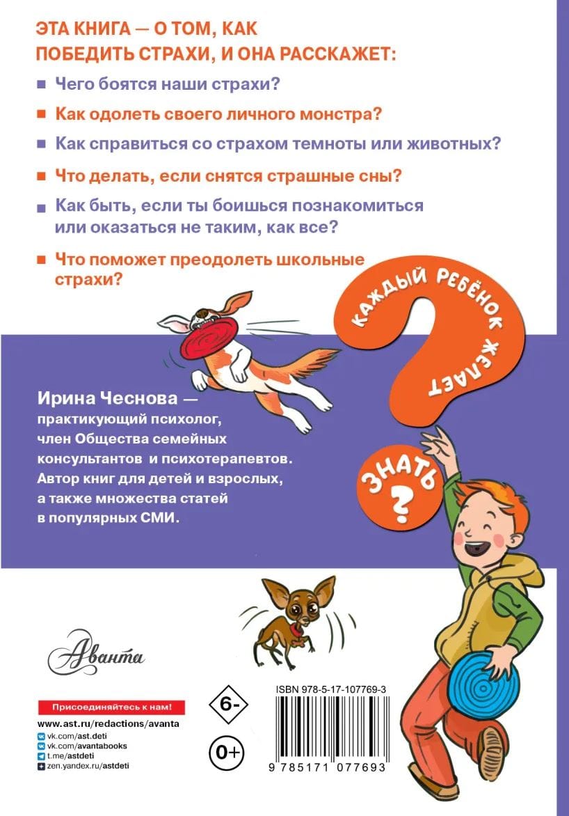 На этот раз известный семейный психолог Ирина Чеснова раскроет юным читателям все секреты победы над страхами. Что делать, если боишься темноты, животных, чудовищ или привидений? Как быть, если страшно знакомиться или отвечать у доски? Как преодолеть страх неудачи? Можно ли прогнать ночные кошмары? И вообще, чего сами боятся наши страхи, как не сдаваться им в плен, а наоборот задать жару и почувствовать себя уверенными и смелыми, расскажет эта книга.