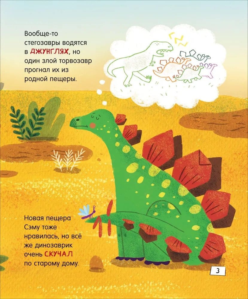 Стегозавр Сэм недавно переехал в новый дом и очень скучает по старым друзьям. Как хорошо, что родители разрешили их навещать. Вот только прогулки Сэма не обходятся без сюрпризов…