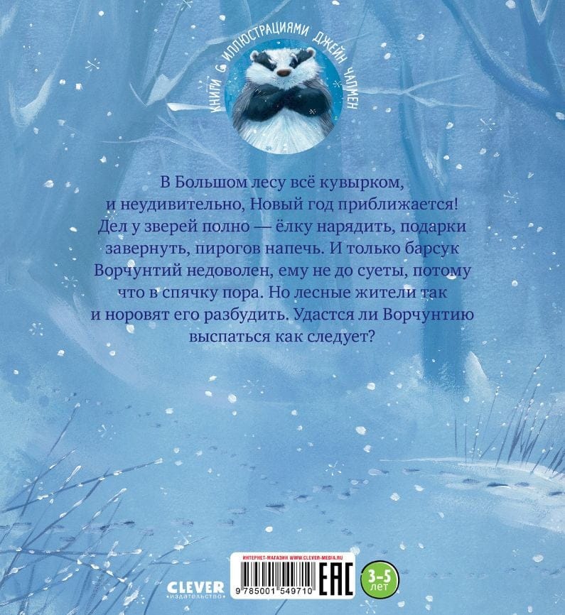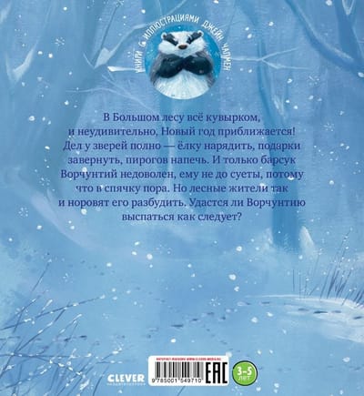 В Большом лесу всё кувырком, и неудивительно, Новый год приближается! Дел у зверей полно - ёлку нарядить, подарки завернуть, пирогов напечь. И только барсук Ворчунтий недоволен, ему не до суеты, потому что в спячку пора. Но лесные жители так и норовят его разбудить. Удастся ли Ворчунтию выспаться как следует?