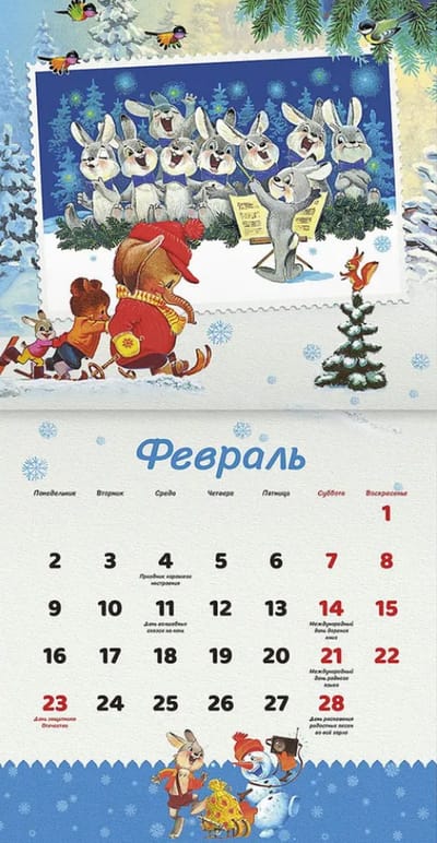 Добрые и нежные герои рисунков художника-мультипликатора Владимира Зарубина принесут удачу, веселье и радость на весь год. А чтобы каждый месяц этого года стал особенным, не забывайте отмечать праздники вместе с любимыми и друзьями.
