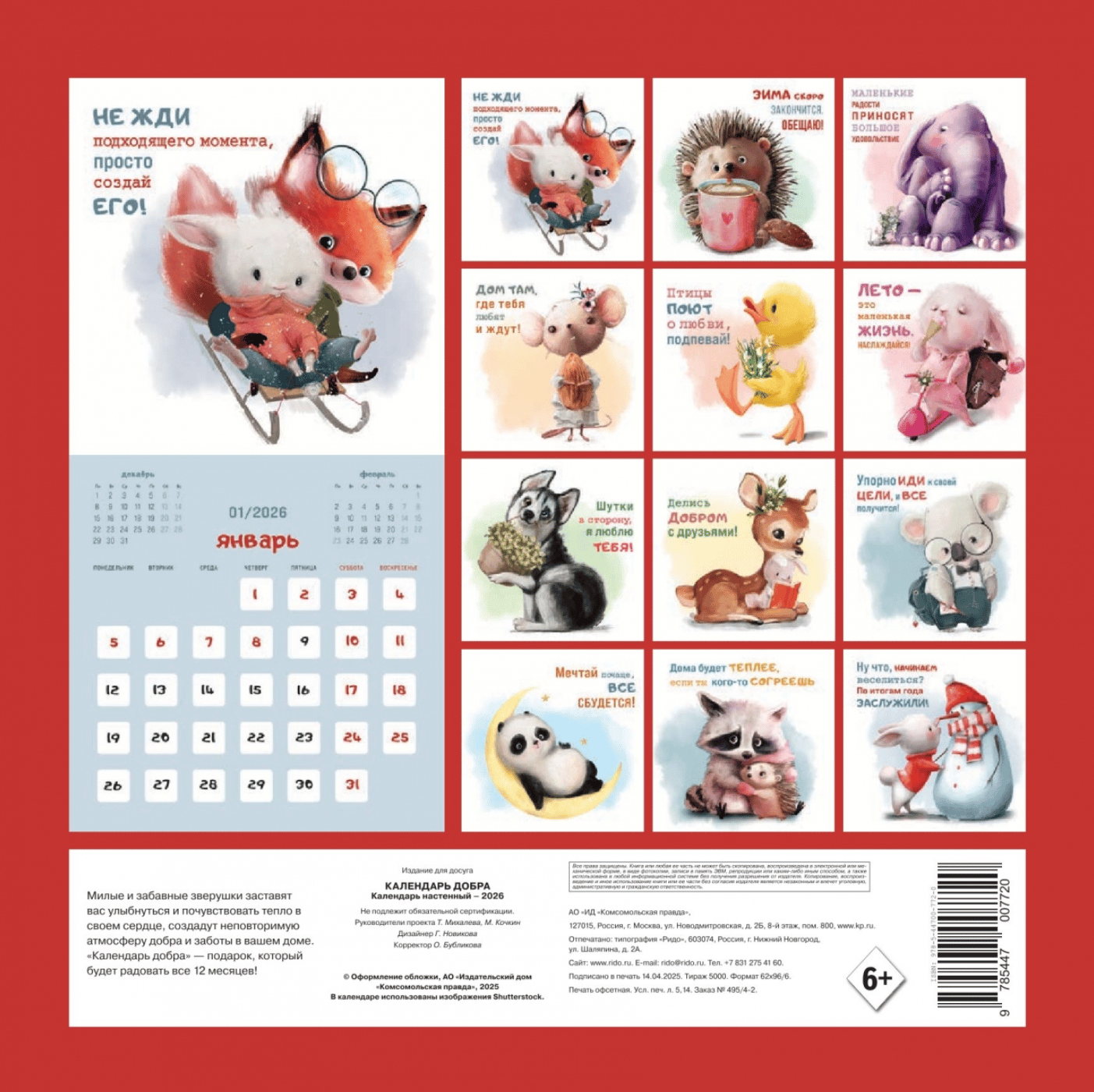Милые и забавные зверушки заставят вас улыбнуться и почувствовать тепло в своем сердце, создадут неповторимую атмосферу добра и заботы в вашем доме. «Календарь добра» — подарок, который будет радовать все 12 месяцев!