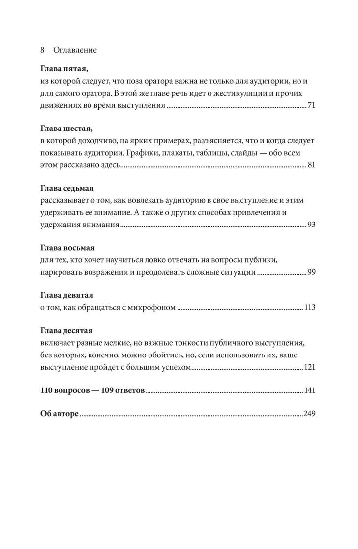 Публичные выступления для многих сродни кошмарному сну. Тем не менее большинству из нас регулярно приходится произносить речи перед той или иной аудиторией. Мы добиваемся благорасположения слушателей, стараемся понравиться, побуждаем сделать то, что нам нужно: согласиться с нашим мнением, принять нужное решение… Удачное выступление может изменить судьбу отдельного проекта или ход истории, но кроме этого оно должно доставлять удовольствие и аудитории, и самому оратору.