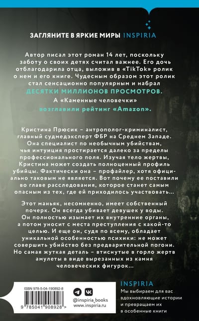 Этот маньяк, несомненно, имеет собственный почерк. Он всегда убивает девушек у воды. Он полностью изымает их внутренние органы, а потом уносит с места преступления с какой-то целью. И еще он, судя по всему, обладает уникальной особенностью психики: не может совершить убийство без предварительной погони. Но самая жуткая деталь — втиснутые в горла жертв амулеты в виде вырезанных из камня человеческих фигурок…