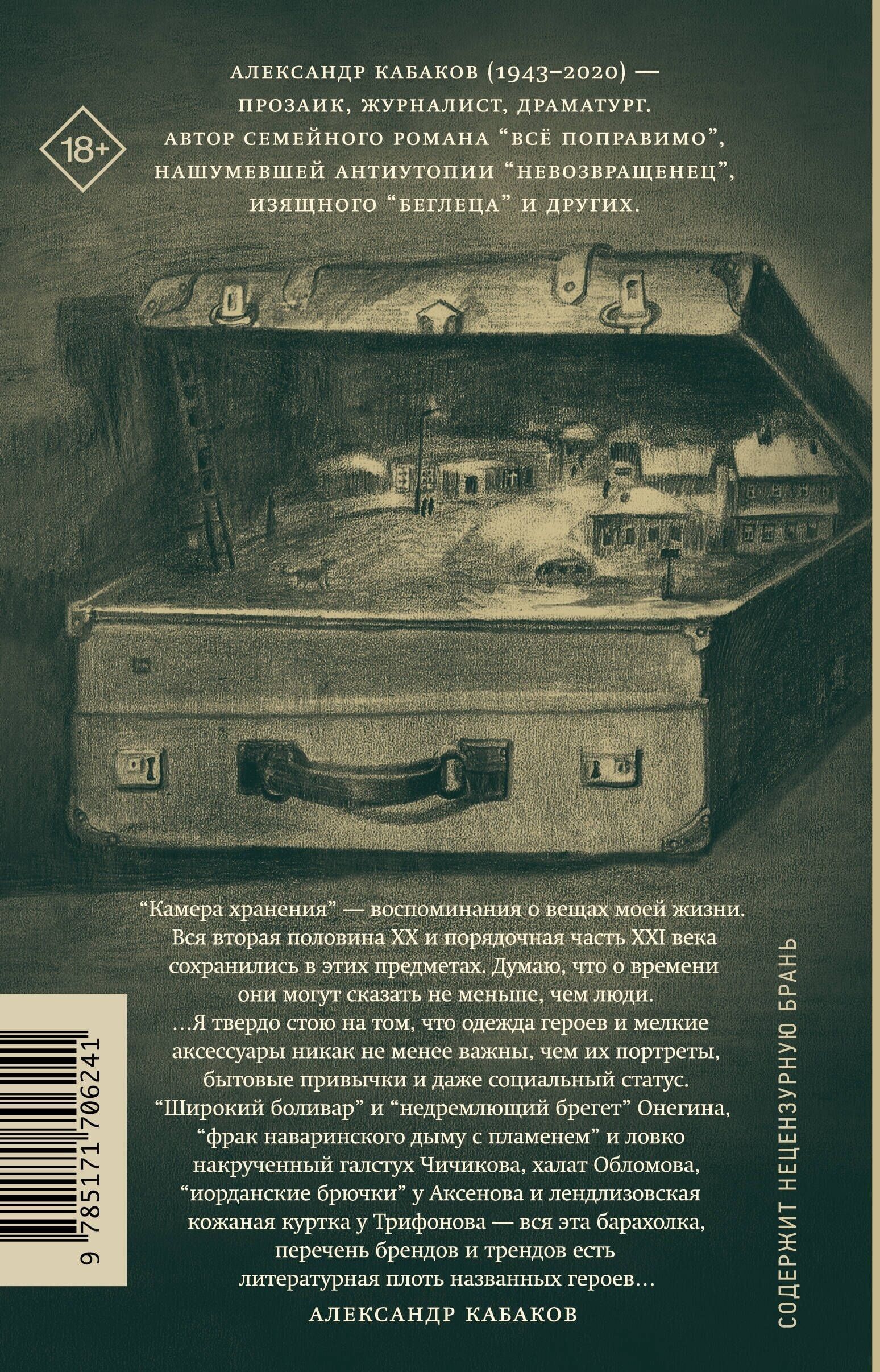 Из цитаты Александра Кабакова: «Камера хранения» — воспоминания о вещах моей жизни. Вся вторая половина ХХ и порядочная часть ХХI века сохранились в этих предметах. Думаю, что о времени они могут сказать не меньше, чем люди».