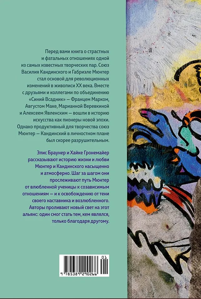 Элис Браунер и Хайке Гронемайер насыщенно и атмосферно рассказывают о встрече, жизни и разрыве одной из самых известных пар в искусстве ХХ века — Василия Кандинского и Габриэле Мюнтер. Этот союз, продуктивный для творчества, в личностном плане был разрушительным. Габриэле пришлось пройти путь от влюбленной ученицы через созависимые отношения к освобождению от тени своего наставника и возлюбленного.