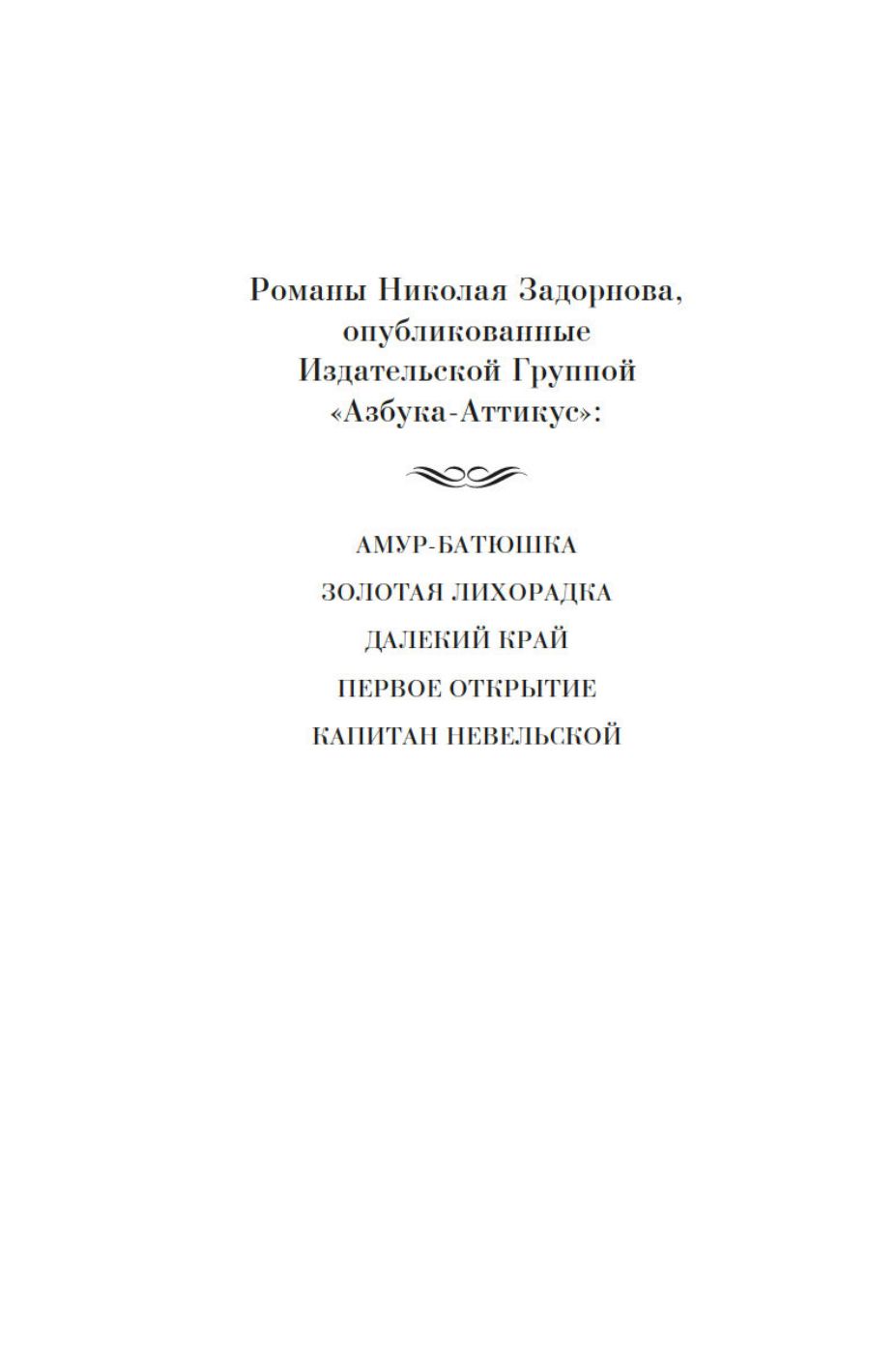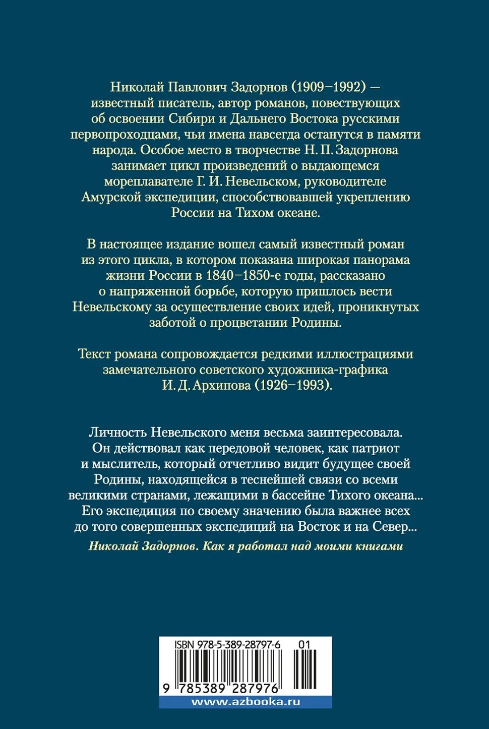 Николай Павлович Задорнов (1909–1992) — известный писатель, автор романов, повествующих об освоении Сибири и Дальнего Востока русскими первопроходцами, чьи имена навсегда останутся в памяти народа. Особое место в творчестве Н. П. Задорнова занимает цикл произведений о выдающемся мореплавателе Г. И. Невельском, руководителе Амурской экспедиции, способствовавшей укреплению России на Тихом океане. В настоящее издание вошел самый известный роман из этого цикла, в котором показана широкая панорама жизни России в 1840–1850-е годы, рассказано о напряженной борьбе, которую пришлось вести Невельскому за осуществление своих идей, проникнутых заботой о процветании Родины.