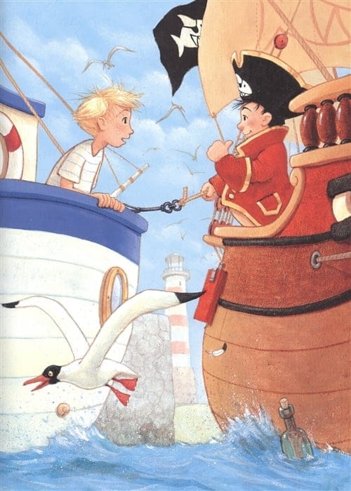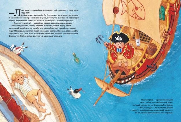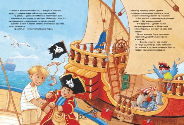 — На абордаж! — кричит капитан Шарки и прыгает на палубу яхты, где сидит и скучает мальчик по имени Мáйки. Наконец-то в жизни Майки происходит что-то интересное: он оказывается на настоящем пиратском корабле в компании маленького пирата и его команды! Капитан Шарки и Майки быстро становятся друзьями. В бутылке, которую капитан Шарки подобрал в океане, они находят старую пожелтевшую карту острова, где зарыт клад, и отправляются на поиски сокровищ…