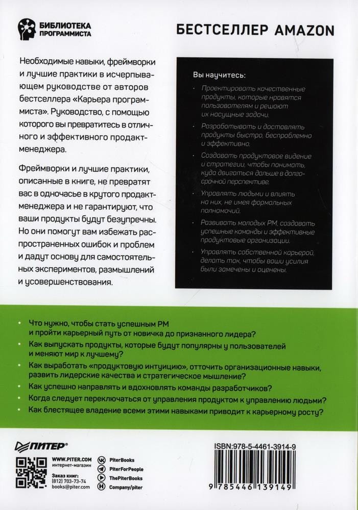 Фреймворки и лучшие практики, описанные в книге, не превратят вас в одночасье в крутого продакт-менеджера и не гарантируют, что ваши продукты будут безупречны. Но они помогут вам избежать распространенных ошибок и проблем и дадут основу для самостоятельных экспериментов, размышлений и совершенствования.