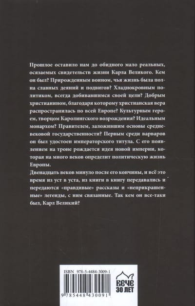 Двенадцать веков минуло после его кончины, и всё это время из уст в уста, из книги в книгу передавались и передаются «правдивые» рассказы и «неприкрашенные» легенды, с ним связанные. Так кем он все-таки был, Карл Великий?